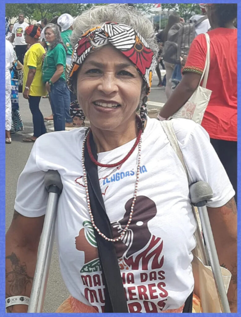 Maria Edna, de 55 anos, esteve na Marcha das Mulheres Negras ao lado de várias outras mulheres PcDs que buscam enfrentamento ao capacitismo e reforçam a importância de garantir acessibilidade. Crédito: Jane Fernandes