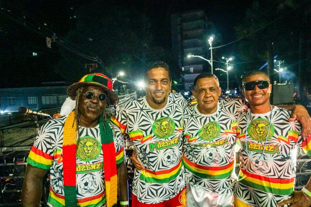 O Bloco Afro Muzenza do Reggae levou para as ruas de Salvador, nos dias 14, 16 e 17 de fevereiro, desfiles marcados por ancestralidade, estética e afirmação política. Com o tema “Ginga: a Arte do Negro no Futebol”, o bloco saiu no sábado e na terça-feira pelo Circuito Osmar (Campo Grande) e, na segunda-feira, pelo Circuito Dodô (Barra-Ondina), apresentando passagens potentes e visualidades marcantes que reafirmaram o protagonismo negro na construção cultural do futebol brasileiro.