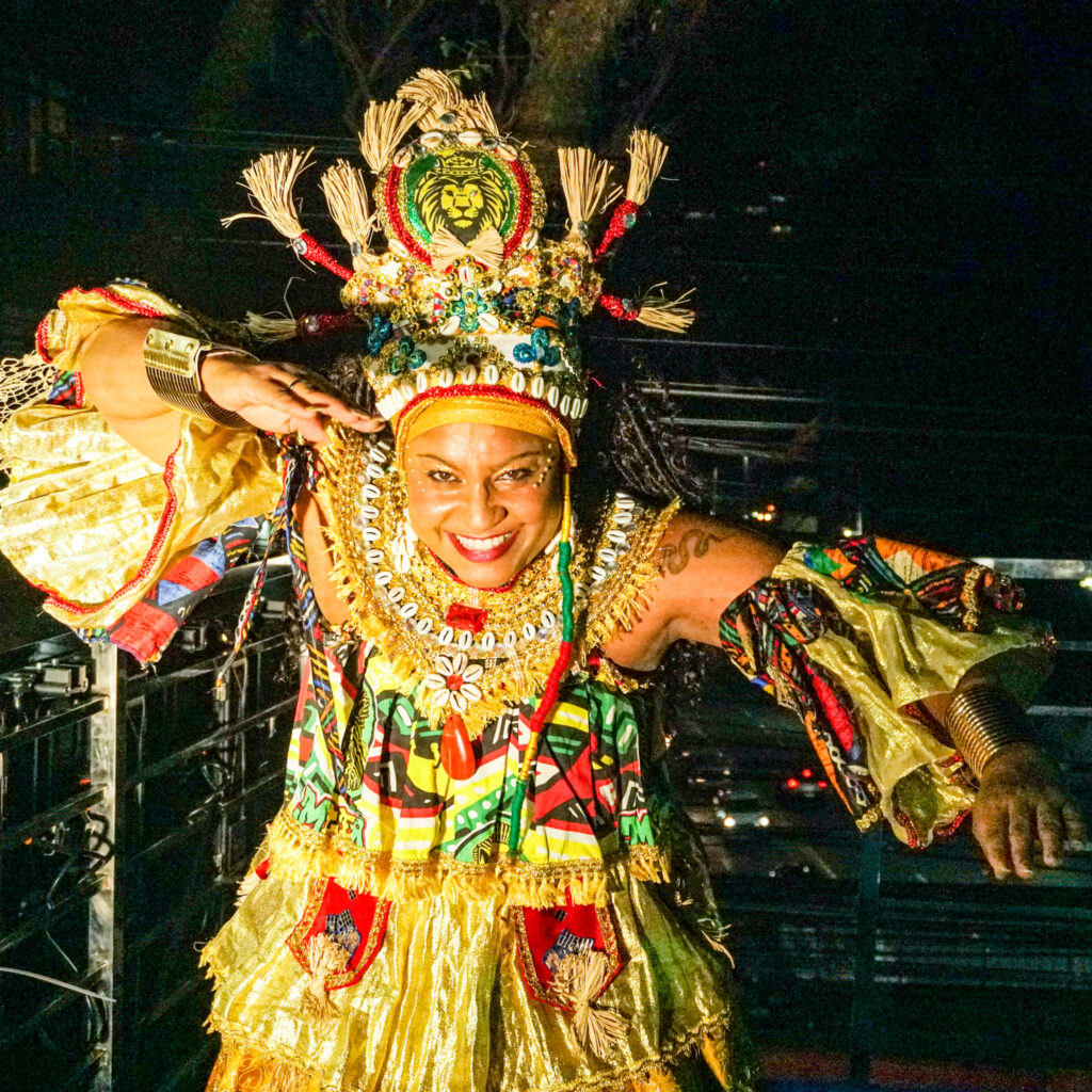 Em um ano de Copa do Mundo, o Muzenza transformou a avenida em campo e palco, com música, dança, figurinos e coreografias que dialogaram com a memória ancestral da ginga oriunda dos corpos negros, como protagonistas da própria história. A proposta destacou o futebol como linguagem cultural negra, nascida da capoeira, do samba de roda, do maculelê, dos terreiros, das ruas e dos corpos que historicamente transformaram o jogo em arte e resistência. Ao longo dos três dias, o bloco emocionou o público com performances marcantes, estética vibrante e a força do samba-reggae.